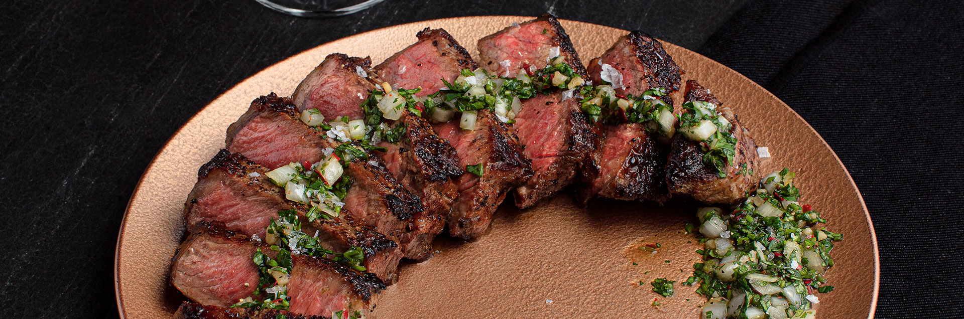Place on plate and allow steak to rest for 5 minutes prior to cutting. Slice and then drizzle Cilantro Chimichurri over top of steak or serve on side.