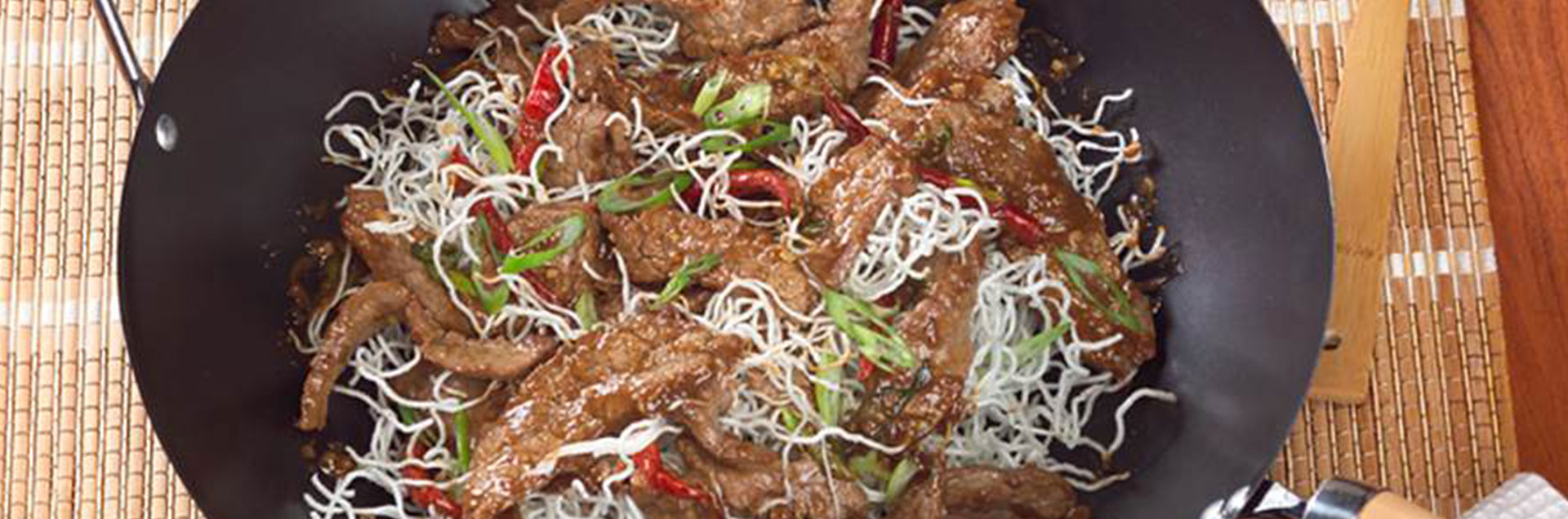 Serve over crispy rice noodles. (In 6-quart stockpot, heat oil to 375°F and deep-fry rice noodles until puffy. Then, drain onto paper towel.)
