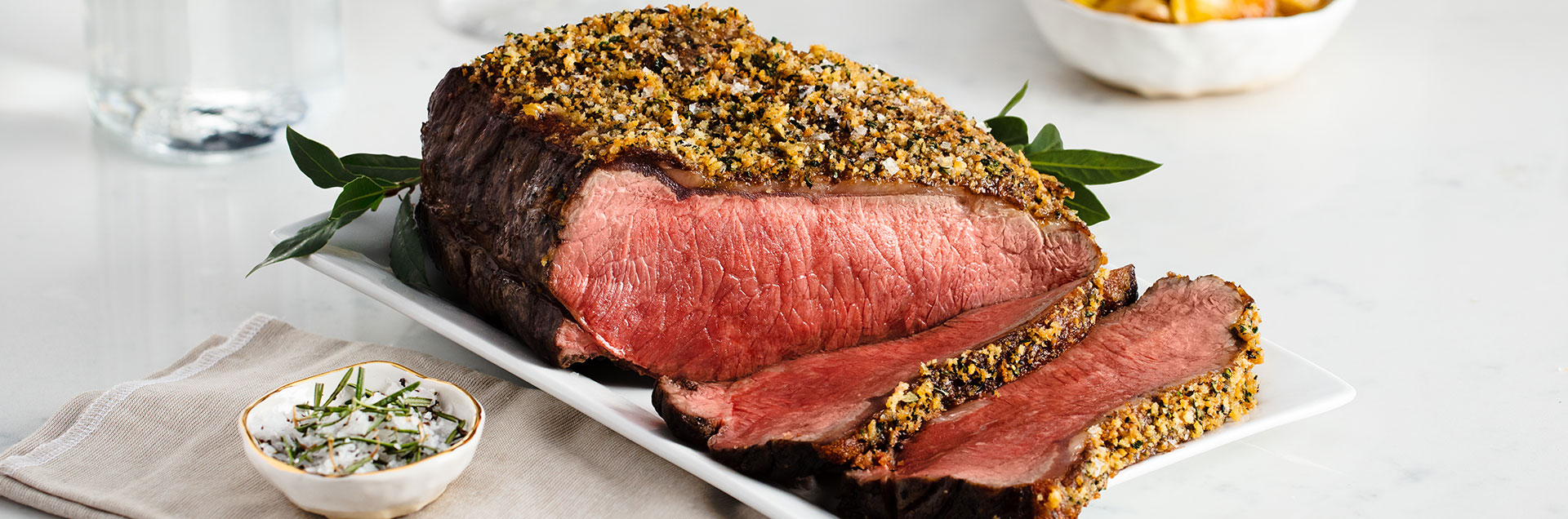 Roasted Strip Loin with Herb and Roasted Garlic Crust