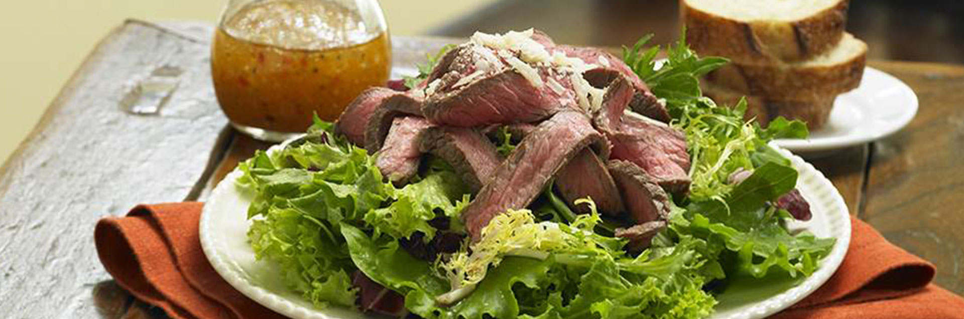 Grilled sirloin served on salad greens with an Asian-inspired dressing.